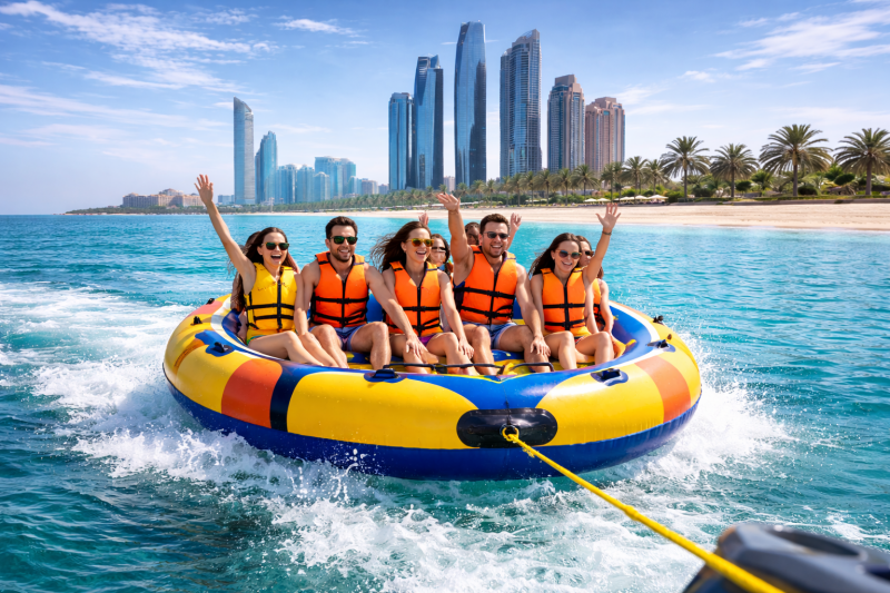 Enjoy a fun and exciting banana boat ride at Abu Dhabi Corniche with Rocky Riders. Ride together with friends, couples, or family as you are pulled across the sea for a thrilling and unforgettable experience. Perfect for group fun and adventure lovers.